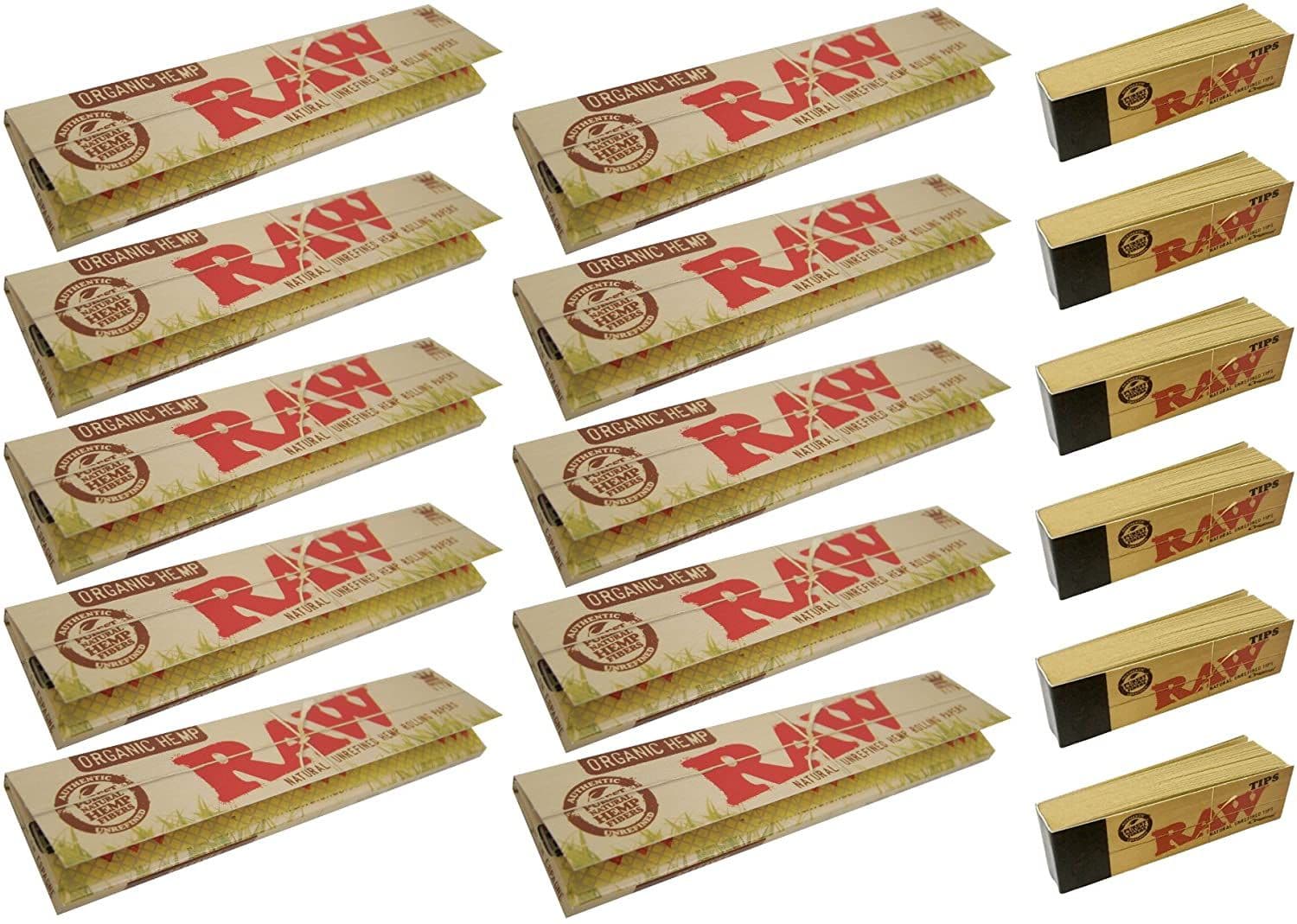 10 RAW Organic Kingsize Slim Rolling Papers Skin & 6 Raw Tips Roach Filter