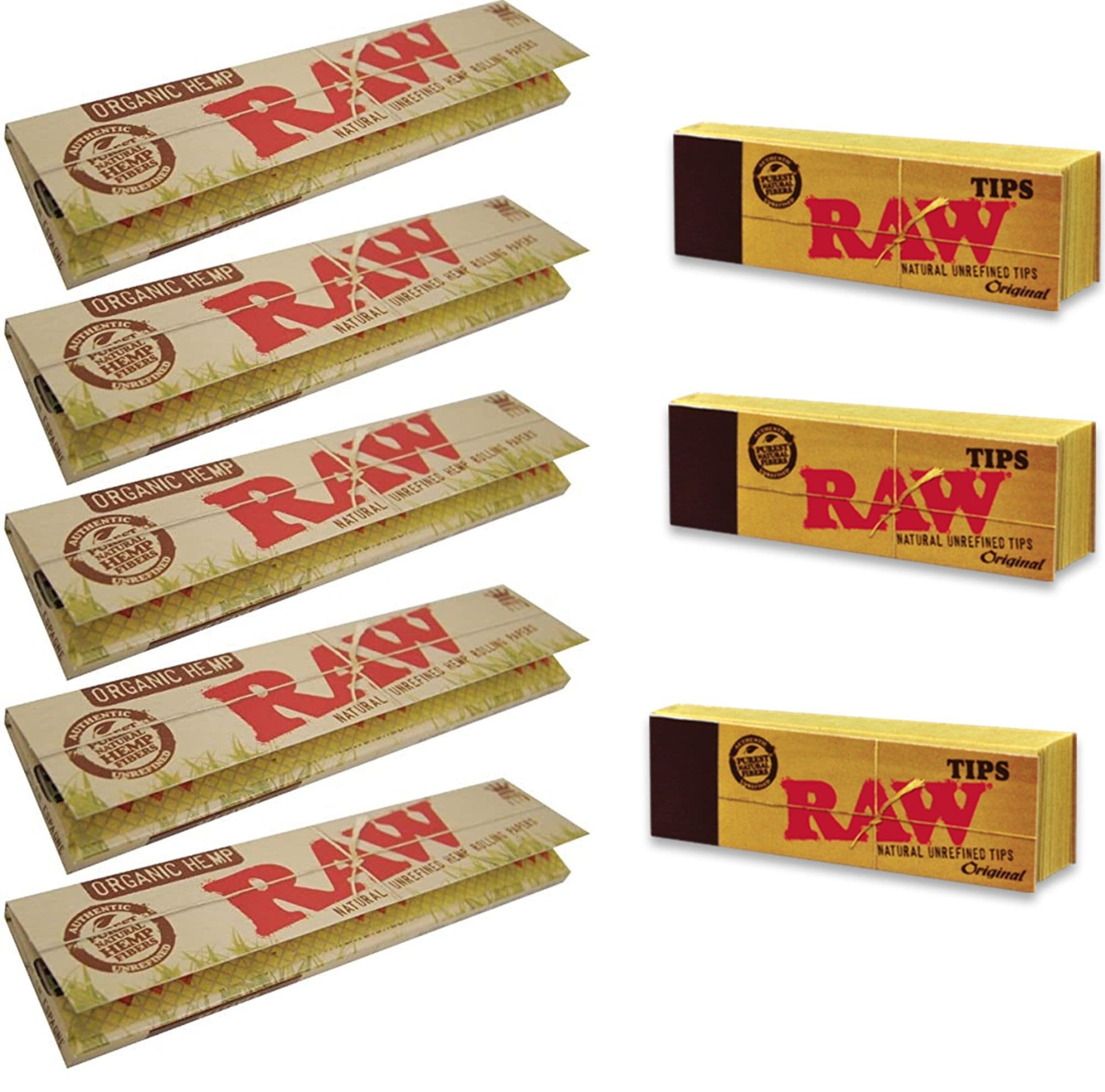 5 RAW Organic Kingsize Slim Rolling Papers And 3 Raw Tips